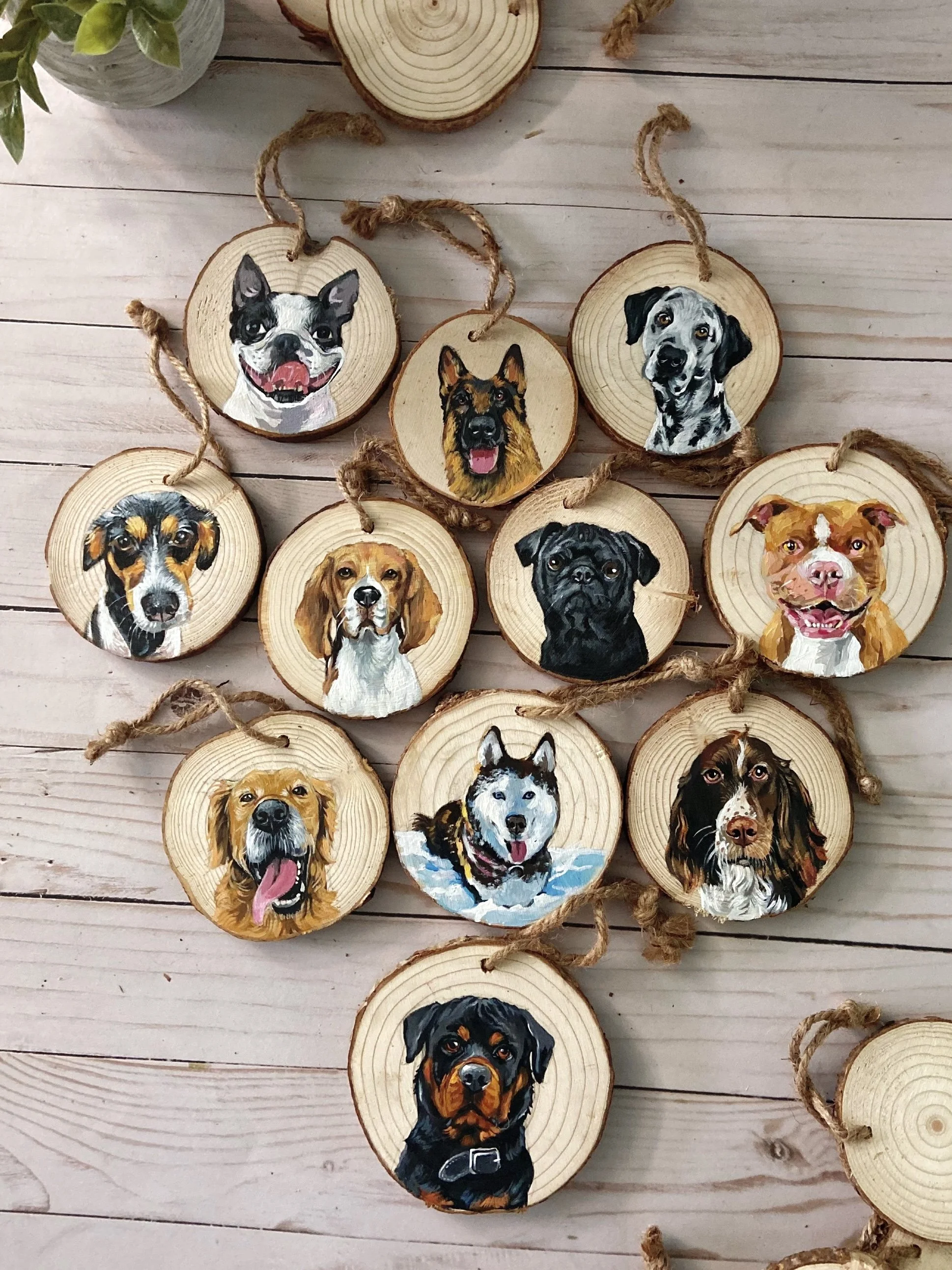 Hand-painted on natural wood slices, these ornaments capture the personality and charm of your furry friend. Each piece is a one-of-a-kind keepsake—perfect for celebrating your pet, remembering a beloved companion, or gifting to a fellow animal lover.